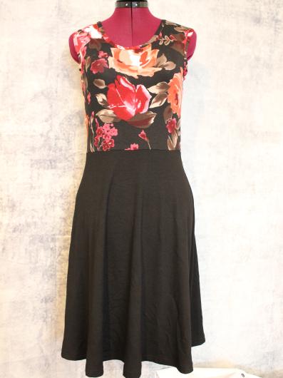 En "strax över knä-lång" klänning. Egentligen gjord för att ha ärmar men det gick ju bra utan oxå :) Mönstret kommer från Sewing Heart Design.