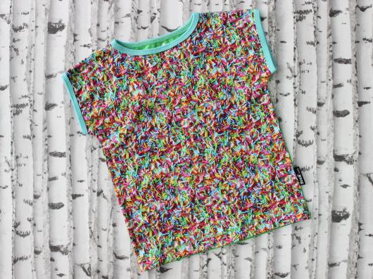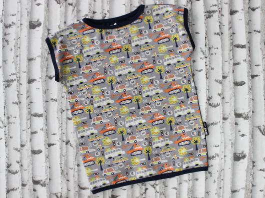 Min egen grabb fick syn på ett tyg med strössel i mina gömmor och ville genast ha en tröja så sagt och gjort en strösseltröja till grabben. Och när vi ändå var igång blev det även en med fordon.